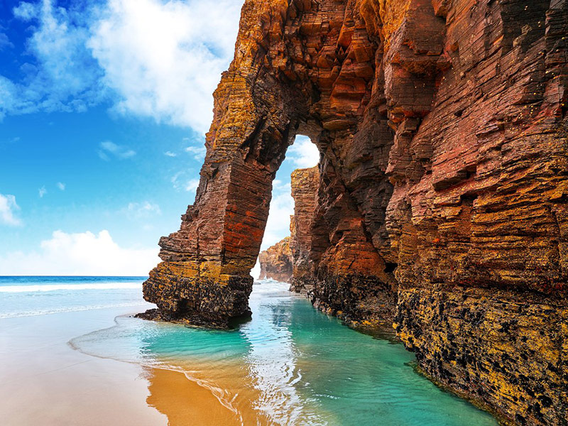 Величественные скалы пляжа - известная природная достопримечательность Галисии. Во время отливов можно обнаружить огромные арки и пещеры.