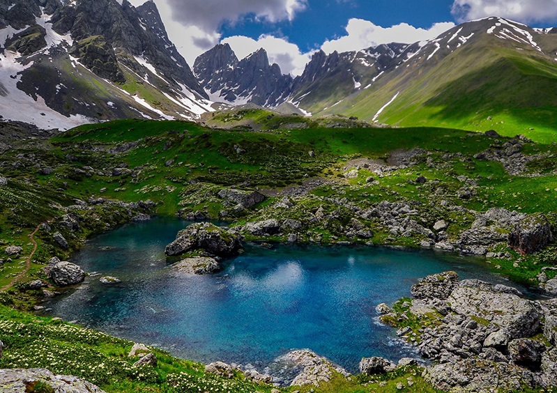 Сложно дойти и сложно забыть – вот что можно сказать про Абуделаурские озера. Фотографируйте незабываемую панораму гор и озер Грузии!