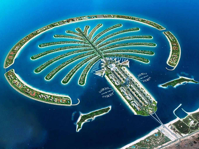 Строительство искусственных островов было начато властями ОАЭ для увеличения береговой линии и с целью привлечь туристов. Самый крупный остров в форме финиковой пальмы – Пальма Дейра, самый маленький – Пальма Джумейра.