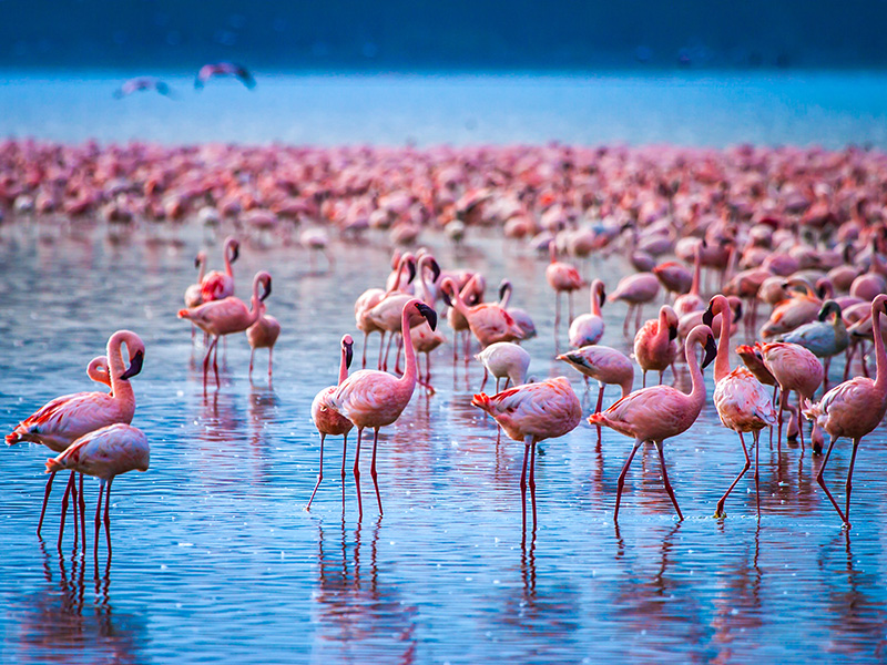Берега озера, розовые от миллионов фламинго, - невероятное зрелище!