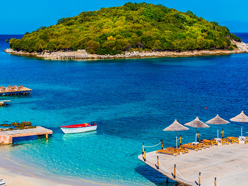 Прозрачное море восхитительного оттенка, белые пляжи с пологим заходом в воду, необитаемые острова под шапкой зелени привлекают сюда и иностранцев, и самих албанцев.