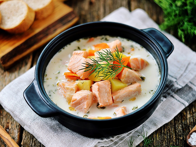 Самой популярной рыбой является лосось. По-настоящему финский способ насладиться им - съесть миску горячего супа из лосося с ржаным хлебом. Свежие сливки придают блюду роскошный аромат.