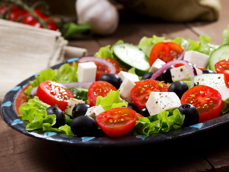 Хорьятики – полезный и вкусный греческий салат из оливок, свежих овощей, феты и оливкового масла. Кстати, оливковое масло греки любят добавлять в большинство блюд.