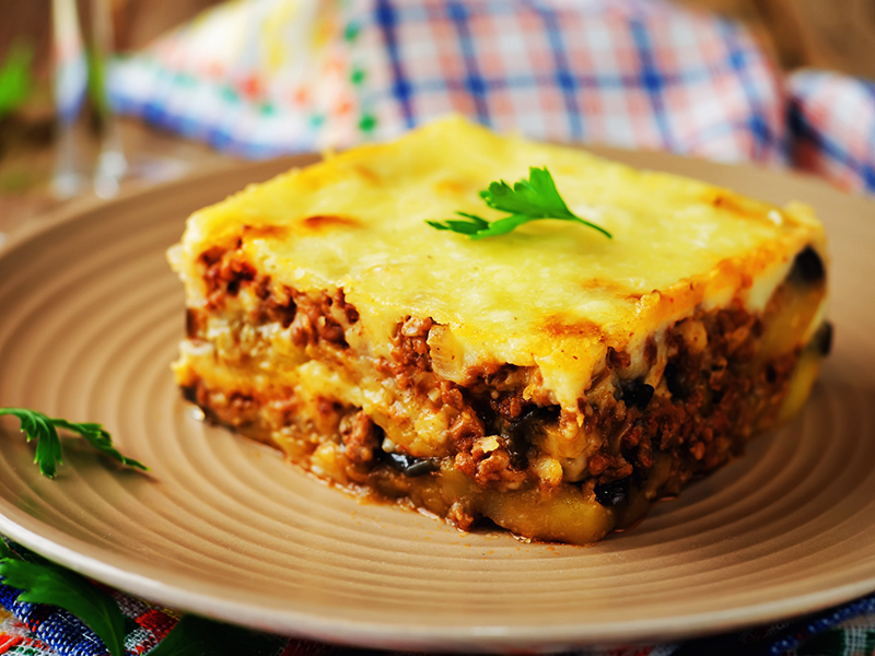 Мусака – слоеная запеканка из баклажан, фарша, сыра и соуса «бешамель». Сытное вкусное блюдо, которое нередко подается огромными порциями.