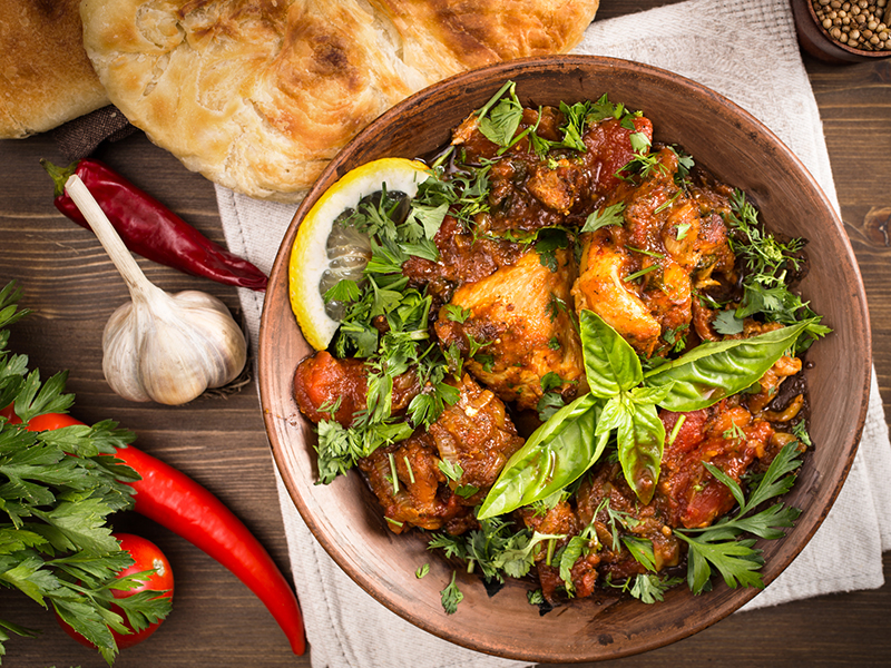 Чахохбили – раньше это блюдо готовили из фазана, теперь – из курицы, которая томится в собственном соку.