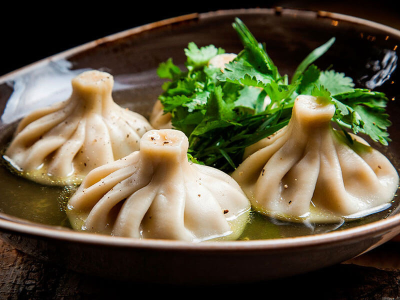 Хинкали – по традиции хинкали кушают, взяв руками за хвостик из теста.