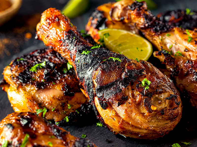 Джерк-чикен - самая традиционная национальная еда Ямайки. Для него характерна знаменитая специя джерк, которая представляет собой особую комбинацию, состоящую из смеси корицы, гвоздики, имбиря, тимьяна, чеснока, перца и мускатного ореха. Jerk Chicken продается у уличных торговцев, а также в ресторанах среднего и высокого класса.