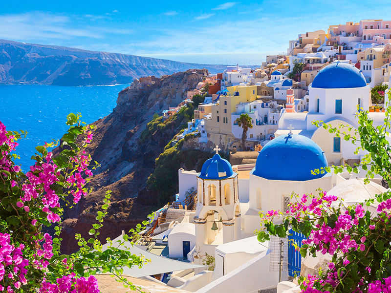 Остров Санторини пленяет белоснежными домиками и синими куполами храмов, черными вулканическими пляжами и восхитительными морскими ландшафтами, историей и закатами. Это один из самых красивых островов Эгейского моря.