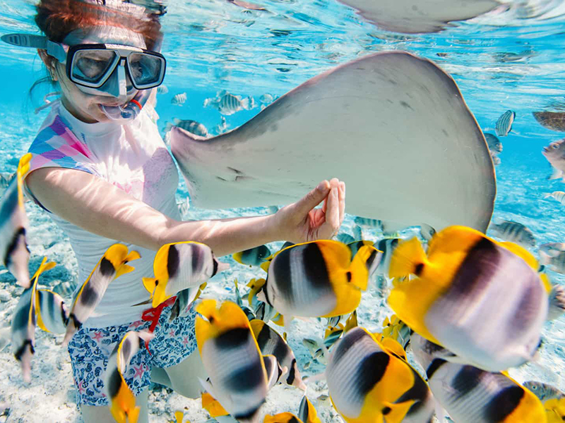 В прозрачной воде живут стайки разноцветных рыбок, осьминоги, черепахи, акулы, скаты и другие экзотические создания. Чтобы вволю насмотреться на яркие подводные краски, возьмите специальную маску или акваланг.
